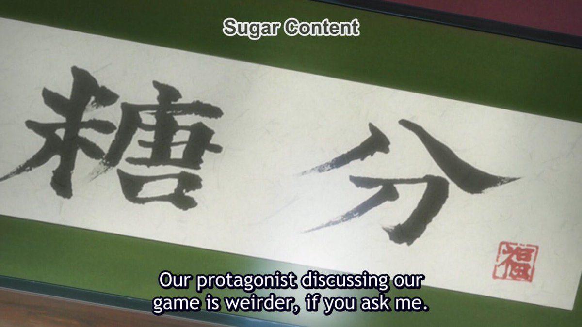 The mind your sugar levels sign. It will all get to us eventually. For the most part Gintoki is content with hanging out with his friends.